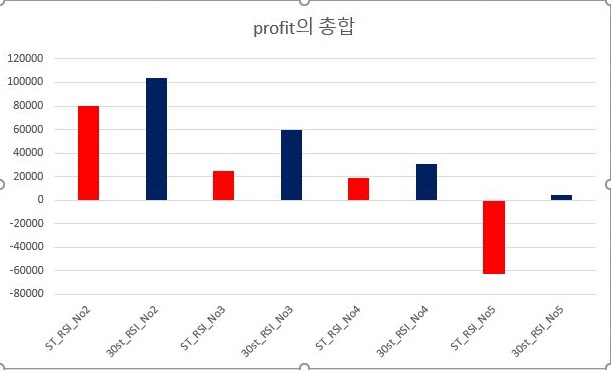 그리고 이익인 profit의 총합까지 가면, 상당히 볼만한 상황이 나오기는 나옵니다. 일단 이렇게만 보면, 30% 손절매 조건에서 기존의 RSI기반 매도/매수 룰이 좋지만, 20%와 비교를 해봐야 합니다.