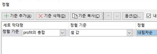 그래서 하는 수 없이 profit의 총합을 가지고서 내림차순으로 정렬을 하는 엑셀의 고유 기능을 사용해서 한번 작업을 해 보고자 합니다.