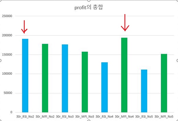 그래서 RSI지수와 한번 포트폴리오 가치의 평균을 비교해ㅑ 보았습니다. 문제난 여기서 메인이 되는 MFI지수의 No4의 경우에는 오히려 평균이 RSI지수보다 더 높습니다.