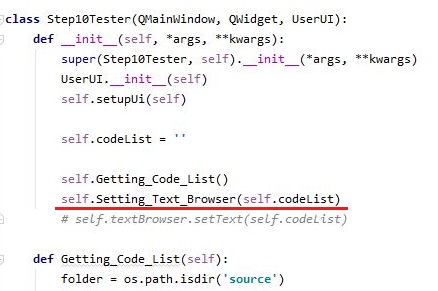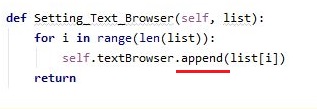 그리고나서 이 하나하나 나왔는 리스트의 요소등을 텍스트 브라우저에 append하는 식으로 해서, 하나하나 집어넣어 주도록 합니다.