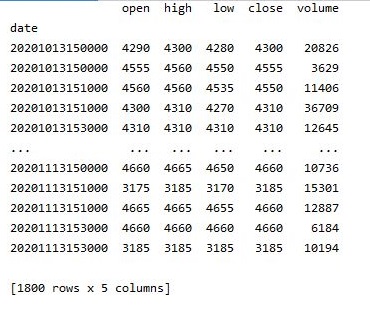 그래서 기존의 1분봉 캔들챠트를 가지고 오는 것에서 한번 변형을 일으켜서 이번에는 10분봉 캔들챠트로 가지고 오도록 하는 것으로 바꾸어 보았습니다.