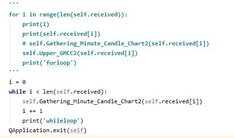 그래서 일단 실험을 하였는 for loop는 이제 주석처리를 한 다음에, 다음으로 해야 하는 것으로는 일단, while loop를 이용하면 가능할 것이라 생각을 했습니다.
