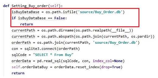 일단 매수 오더를 세팅하는 과정을 거치고자 합니다. 이 과정을 거치기 위해서는 먼저 지난번에 생성이 된 Buy_Order라는 데이터 베이스를 읽어올 필요성이 있습니다.