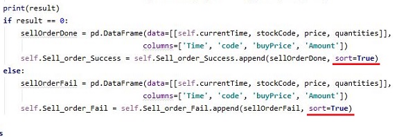 그래서 매도 주문이 제대로 들어갔는지, 아니면 제대로 안 들어갔는지를 알아보는 결과를 가지고서, 일단 위 스크린샷에서 볼 수 있는 것처럼 sort를 True로 해주도록 합니다.