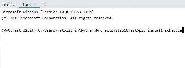 그리고 나서 주식시장이 멈추면 자동으로 프로그램을 멈추라고 명령을 해야 하기 때문에, 일단 위 스크린샷에서 볼 수이 있는 것과 같이 일단은 schedule이라는 라이브러리를 설치해 주었습니다.