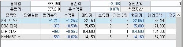 일단 이렇게 해서 매수를 한 종목들만 나오기는 나오는 것을 확인할 수 있기는 있었습니다. 문제는 다른 데에 있기는 있습니다.