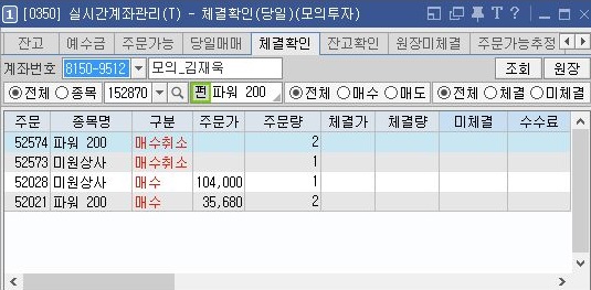 그렇기에 이렇게 해서 계속해서 체결이 되지 않는 경우라면, 매수취소를 하고, 체결이 되는 경우가 드디어 나오고 있는 것을 확인할 수 있었습니다.