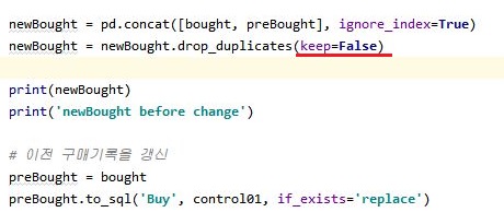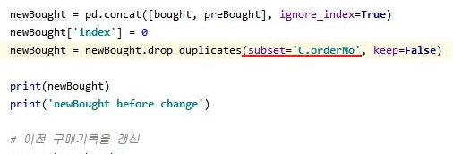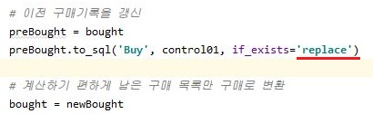 그래서 일단 이전 구매기록을 갱신하는데, 이걸 기존에는 append로 되어 있던 것을 replace로 한번 바꾸어서 계산을 해 보고자 합니다.