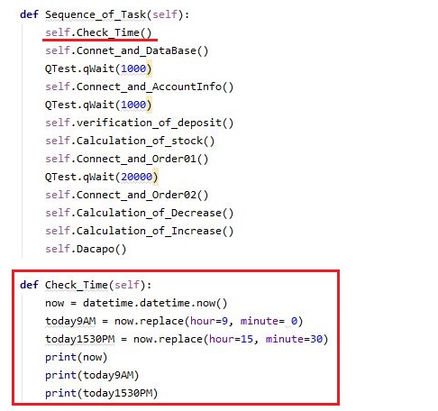 그리고 나서 다음으로 해야 할 것으로는 체크 타임이라는 메서드를 만들어서 장이 서 있는 시간이 아니면 시작하지 말고, 종료된 다음이면 자동으로 프로그램을 종료하라는 식으로 어떻게 만들어 주었습니다.