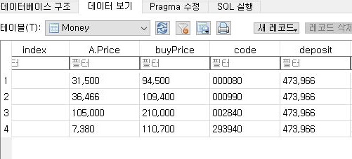 이렇게 하는 것으로 키움증권 서버에서 받아온 자료에는 그래도 어떻게 있는 데이터가 제가 계산한 데이터 베이스에서는 없는 것을 인식할 수 있게 되었습니다. 이렇게 해서 일단 목요일 알고리즘 트레이더의 시운전을 위한 작업을 하나씩 시작해 보았습니다.