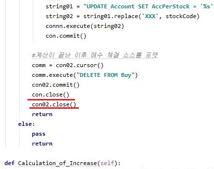 그리고 나서 다음으로 의혹이 된 것이 제대로 삭제가 다 되지 않은 문제점이 나오는데, 이게 혹시나 close()하지 않아서가 아닌가 하는 생각이 들었습니다. 그래서 제대로 메서드의 마지막에 connect해준 데이터 베이스를 닫아 주도록 합니다.