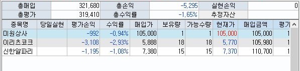 일단 여기서는 어떻게 해서 마이너스가 된 종목이 아직은 없기는 합니다. 문제는 이게 제대로 된 계산인지, 아니면 아직 더 선을 넘어가기 직전인지는 모른다는 것 입니다.