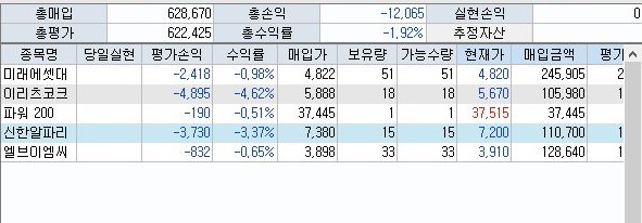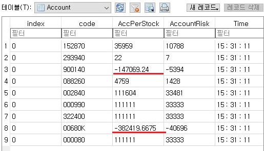 그런데 이러한 액션의 여파일까요? 일단 위 스크린샷을 보면, 어째서 인지 모르겠지만, 우선 기존의 마이너스를 기록하던 계좌들이 또 마이너스를 더 기록해 버린 것을 확인할 수 있었습니다.