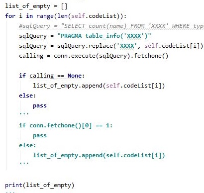 그리고 나서 당음으로 해야 하나는 것으로는 fetchone()을 붙이는 것으로 해서 어떻게 결과를 반환할 수 있도록 만들어 보았습니다. 이렇게 해서 if문을 통해서 만약 테이블이 존재하지 않는다고 해서 리스트에 관련된 코드를 넣도록 했습니다.
