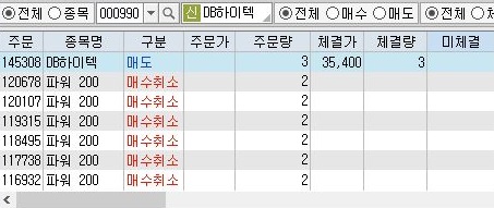 그리고 나서 드디어 기대하고 기대하던 매도 명령이 나오는 것을 확인할 수 있었습니다. 일단 매도는 제대로 체결이 된 것을 확인하였으며.........