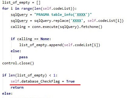 그리고 나서 여기서 위 스크린샷에서 볼 수 있는 것처럼, 일단 원하는 종목의 캔들챠트 데이터 베이스가 모두 완성이 되면, 테이블이 있는 것이 확인이 되었고, 이제 True로 이 플래그를 바꿔서 while 루프를 탈출할 수 있도록 만들어 줍니다.