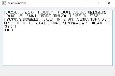그리고 나서 다음으로 진행하고자 하는 것은, 일단 위 스크린샷에서 볼 수 있는 것처럼, 일단은 계좌정보 - 보유하고 있는 주식의 양에 대한 정보가 공백으로 키움증권 서버로 부터 나온 것을 확인할 수 있었습니다.