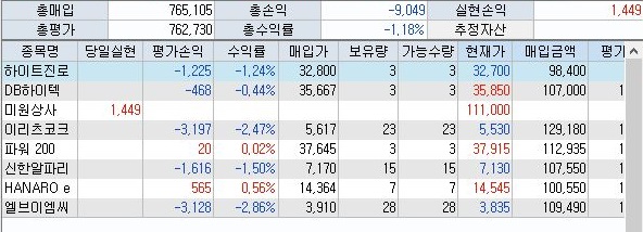 다행이 여기서는 위 스크린샷에서 볼 수 있는 것처럼 이익이 발생해서 1449원의 이익이 나왔습니다. 다만 여기서 알 수 있듯이 그나마 미체결로 있다가 이익이 나서 다행인데, 이게 현재가가 너무 일정 수준 이하가 되면 매도를 취소하는 기능을 어떻게 추가해야 할지 모르겠다는 생각이 듭니다.