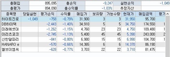 일단 이런 매도에 의해서는 손해가 나온 것을 확인할 수 있었습니다. 그래도 어쨎든 간에 이러한 손해를 어떻게 방지할 방법을 찾아보기는 봐야 겠다는 생각이 듭니다.