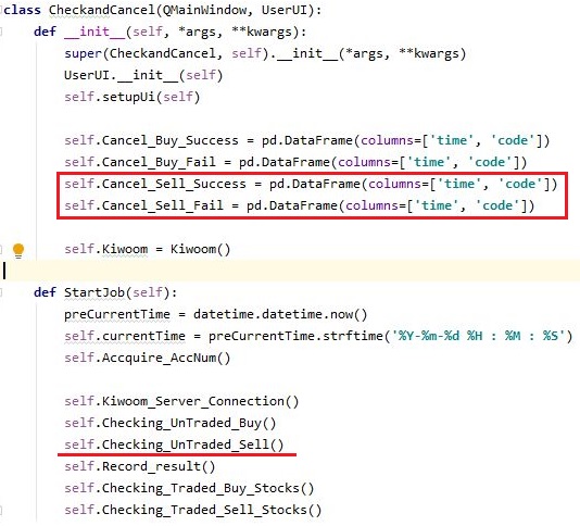그리고 나서 매도명령을 취소하는 것이 성공인지 아닌지를 일단 데이터 베이스 파일에 일일히 담아서 나타낼 수 있도록 만들어 놓았습니다.