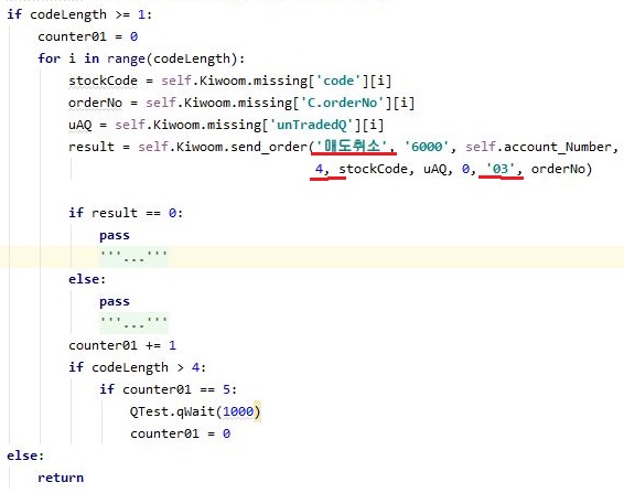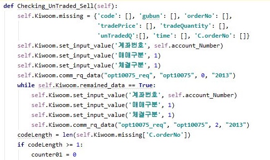먼저 이런 작업을 하기 위해서, 일단 위 스크린샷에서 볼 수 있는 것처럼, 우선 미체결된 매도 명령을 다룰 수 있도록 작업을 걸어 주도록 합니다.