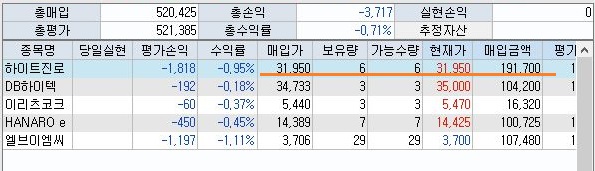 어떻게 된 것인지 하이트 진로의 경우에는 제대로 매수가 되지 않아서 같은 내용의 매수가 2번 연속으로 나오는 것을 확인할 수 있었습니다.