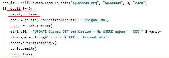 그리고 나서 먼저 Account Info를 받아오는 py파일로 가서, 여기서 나오는 내용을 가지고서 일단 이게 0이 나오면 다음번에도 통과할 수 없도록 변수를 조절해 주었습니다.