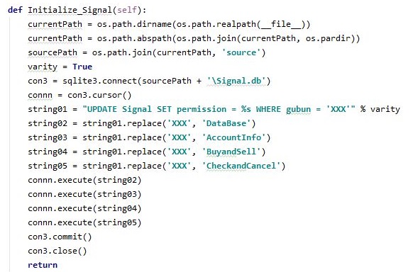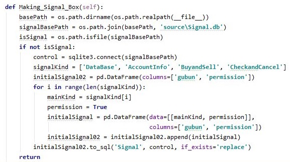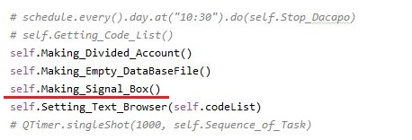 그리고 나서 새로운 메서드를 하나 만들어 주도록 하는데, 이 메서드의 의의는 바로 시작할 때 마다 이 시그널을 체크해서 어떻게 할 것인지를 만들어 주는 것 입니다.