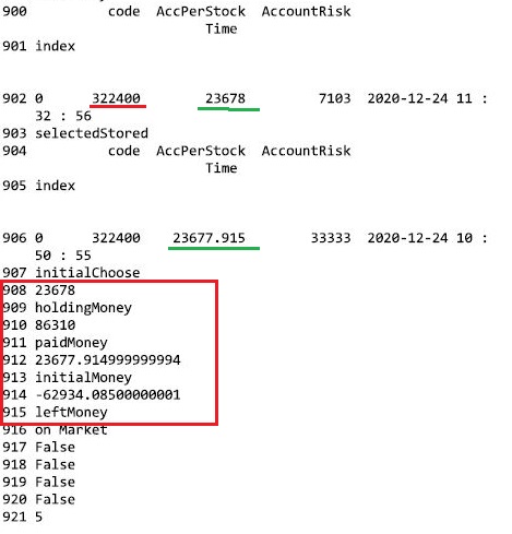 그 다음으로 봐야 하는 것은, 바로 이런 종목에 대한 계산이 여기서는 큰 문제가 없이 지나 갔다는 것 입니다. 일단 decrease를 해 주어야 하는 경우에는 제대로 매수가 일어나지 않았으니 되는데