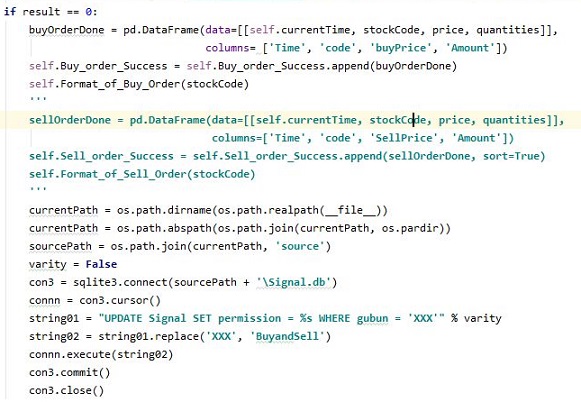 그래서 매도이든 매수이든, 이 필요가 없는 코드를 모두 주석처리 해 주어야만 했습니다. 왜인지 모르겠습니다만, 작성자 스스로가 이걸 만들어 놓고, 오류를 내고 있었습니다.
