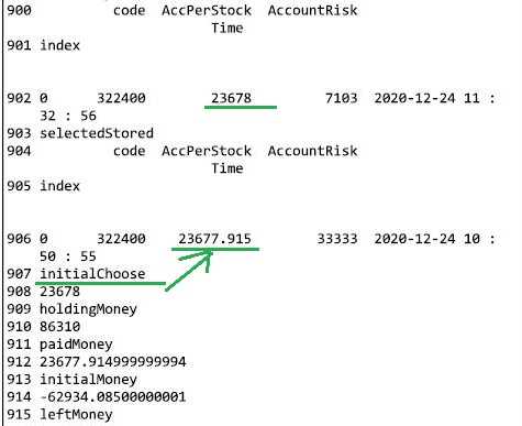 그리고 나서 위 스크린샷에서 볼 수 있는 것처럼 초기 자본금이 0.1이 낮다는 이유로 인해서, 이 값이 이상하게 변했는 것을 확인할 수 있습니다.
