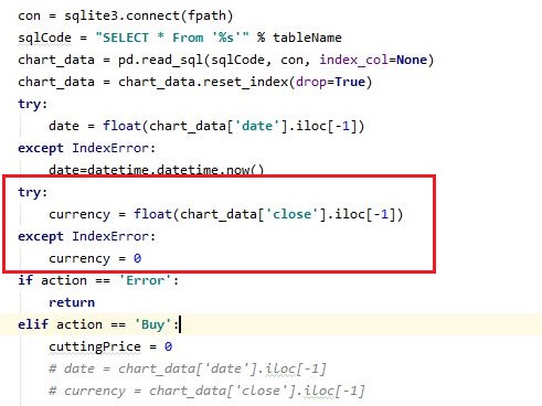 이 부분에서 걸렸는데, 결론부터 말하자면, 챠트 데이터가 비어 있어서 생기는 문제라고 할 수 있었습니다. 그래서 이 문제를 해결하기 위해서 일단 try except문으로 바꾸어 주도록 합니다.