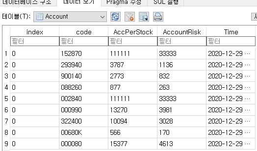 일단 확인을 해 보니까, 이번에도 상식 이하로 내려간 계좌가 없기는 없었습니다. 아마도 어느정도 여유를 준 다음에 계산을 하도록 한 것이 유효했는 듯 합니다.