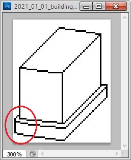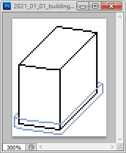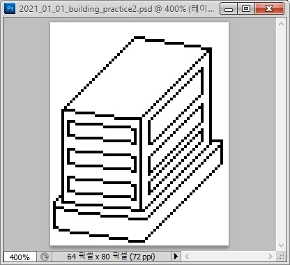 일단 추가로 레이어를 만들어 놓고 나서, 그 위에다가 위 스클린샷에서 볼 수 있는 것처럼, 우선 추가로 윤곽선을 그려서, 건물의 하단부가 돌출이 되어 있는 것처럼 만들어 보도록 합니다.
