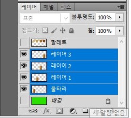 일단 선택된 레이어를 복사하는 방법을 통해서, 우선 위 스크린샷에서 볼 수 있는 것처럼 움직이게 했습니다. 그렇게 한 다음에 이렇게 4개의 레이어를 병합해 주도록 합니다.
