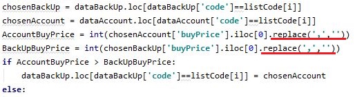 일단 이 작업을 하기 위해서, 위 스크린샷에서 붉은색 밑줄을 친 곳처럼 replace함수를 사용하는 것으로 우선 어떻게 해 주도록 합니다.