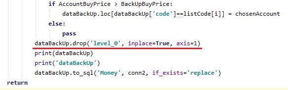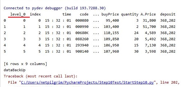 다만 여전히 AccountBackUp에는 이 level_0라는 column이 여전히 있는데, 이게 인덱스와 관련이 된 문제가 아닌가 하는 생각이 들기도 합니다만, 지금으로써는 어떻게 처리할 방법이 없기는 없습니다. 일단 이렇게 해서 한 단계를 넘기고 다음 단계로 들어가 보도록 합니다.