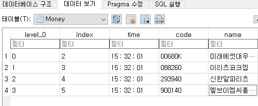 먼저 이 상황이 맞는지 체크하기 위해서 일단 Account Money라는 데이터 베이스를 열어서 계좌를 확인해 보면, 5개의 종목을 매수한 사실을 확인할 수 있습니다.