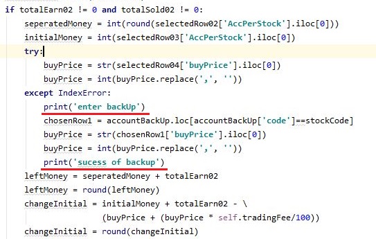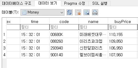 그런나 backup 데이터 베이스에서는 추가하는 과정이 없었기 때문인지 몰라도 제대로 새로 매수한 종목이 들어가지 않은 것을 확인할 수 있었습니다.
