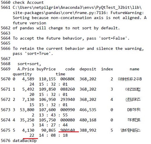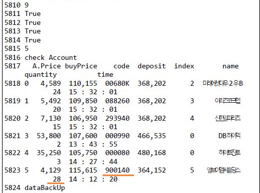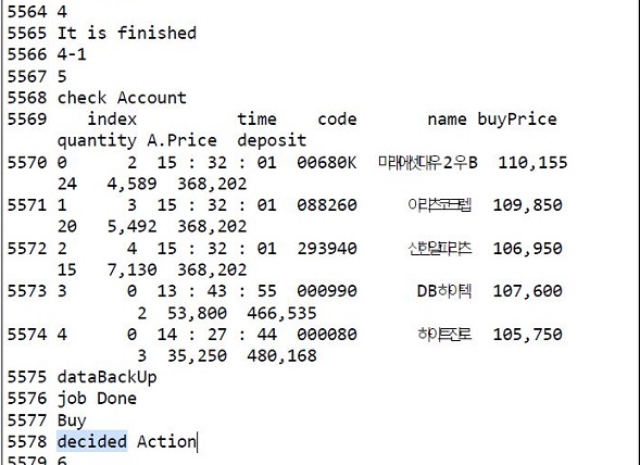 일단 제대로 새로이 매수한 종목이 이 BackUp에 추가가 되는 것을 확인할 수 있기는 있었습니다. 이렇게 해서 간밤에 만들어 놓았던 코드는 성공적인 것을 확인할 수 있었습니다.