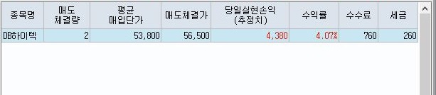 그래서 거래가 어떻게 일어났는지 알아보고자 합니다. 일단 영웅문 HTS상으로 DB하이텍을 마지막으로 매수한 것은 1월 6일 이었습니다.