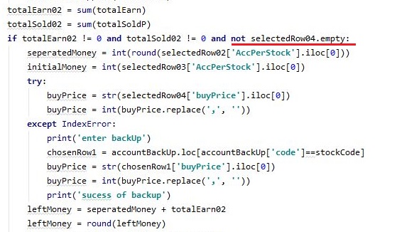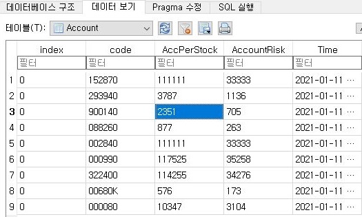 먼저 생각한 것은 AccountMoney라는 데이터 베이스에 없다 = 매수한 적이 없다는 공식이 성립하게 됩니다. 물론 이것도 에러를 일으킬 염려가 있습니다만, 그래도 하나 더 안전장치를 걸어 주어야 겠다는 생각을 했습니다.