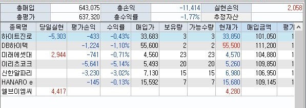 곧 이어서 하이트 진로도 매도에 들어갔는데, 이 경우에는 처음에는 막연하게 또 수익이 올랐구나 라고 생각을 했습나다만..........