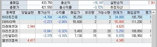 이번에는 제대로 이익이 나왔습니다. 이렇게 기세를 모아 가면서 일단 지켜보고 있는데, 정말 총 손익이라는 항목은 조회를 누를 때 마다 변해서, 이걸 인간이 지켜보는 것은 할짓이 아니라는 생각이 듭니다.