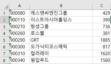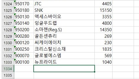 그리고 나서 이제 해야 하는 것은 코스닥인데, 역시 텍스트 파일로 추출된 결과를 위 스크린샷에서 볼 수 있는 것과 같은 엑셀 파일로 만들어 주도록 합니다.