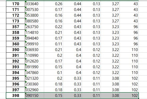 이렇게 해서 코스피에서는 어떻게 4개의 종목만을 남기는데 성공했습니다. 이제 다음으로 해야 할 것으로는 바로 코스닥에서 이런 식으로 걸러내야 한다는 것 입니다.
