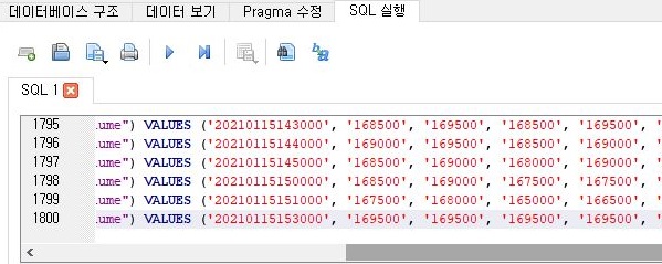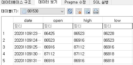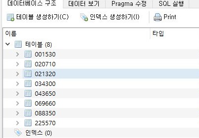 이렇게 해서 모든 8개의 종목에 대한 캔들 챠트 데이터 베이스를 가지고 오도록 합니다. 이렇게 가지고 와서는 이제 다음으로 해야 할 것은...............