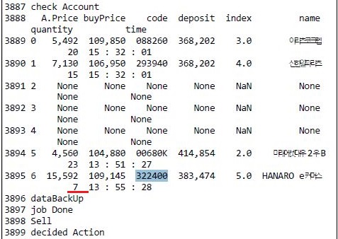 일단 처음으로 매도가 일어나서 계산을 하는 과정인데, 여기까지는 괜찮게 진행이 되기는 되었습니다. 그런데 문제가 하나 나오게 되었습니다.