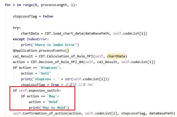 일단 이 스위치가 켜져 있으면, buy명령은 무조건 hold로 바꾸어 버리고, 오로지 관망과 매도만을 하도록 만들어 주도록 해서, 어떻게 처분할 수 있도록 합니다.