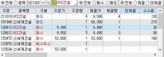 그리고 어떻게 된 것인지 모르겠습니다만, 매도하면 손해가 확실한 상황에서 매도가 일어나서, 이런 상황에서는 취소가 답인데, 그 사이에 10주 중에서 6주가 거래가 되었습니다.